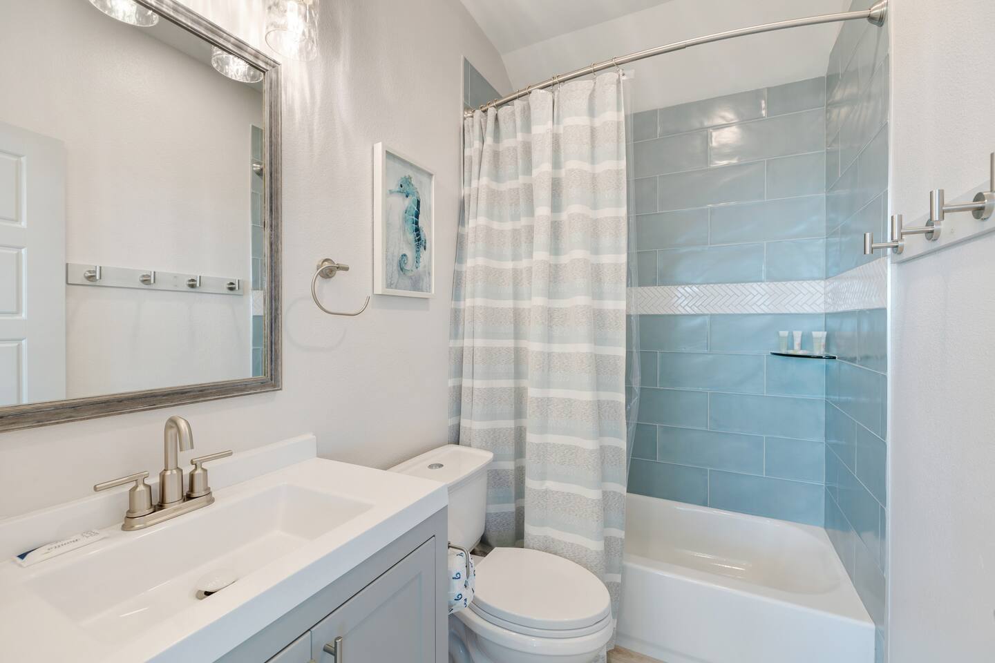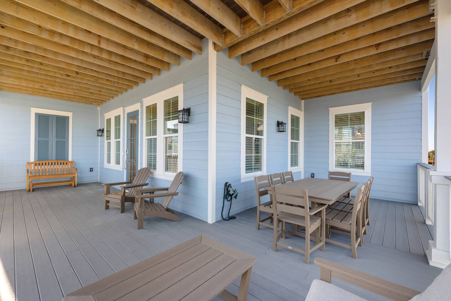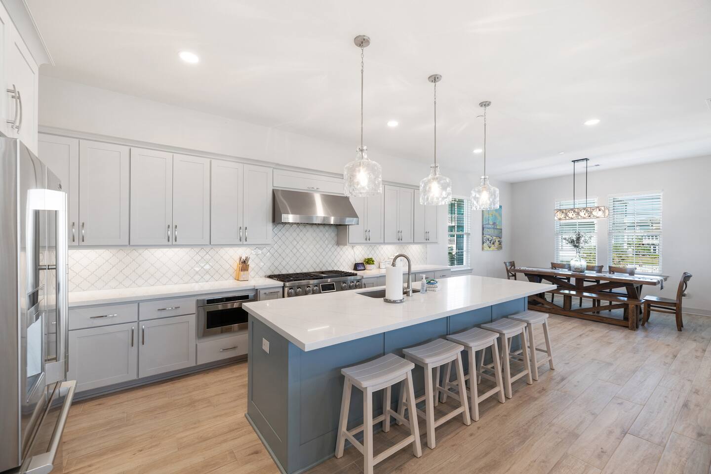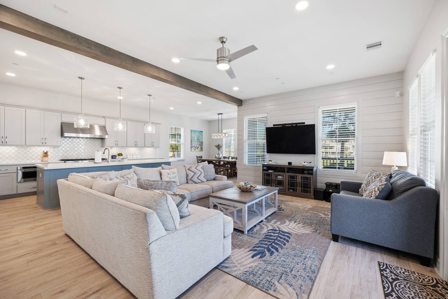 This 4,000 square feet luxurious beach home is equipped with countless thoughtful touches and can accommodate up to 16 guests (maximum 10 adults) making it the perfect choice for a larger group of family or friends. An in-home elevator that services the lower three levels is a fantastic perk to bring luggage or groceries upstairs using the provided cart. The bright and airy open living area has plenty of comfortable seating for relaxing, watching TV or enjoying the beach view. A great feature for guests that enjoy entertaining is a wet bar with a beverage cooler. In the beautiful kitchen, cook with ease using the top-of-the-line appliances such as a 48-inch gas range and double oven or appreciate other kitchen bonuses such as a high-volume ice maker (one of three in the house) that ensures a steady supply of ice for drinks for your entire group. Meal preparation is easy and convenient in this well-stocked kitchen and there is plenty of space for the whole group to dine together at the dining table, oversized kitchen island, or even at the Polywood dining table on the front deck! When it is time to unwind for the day, retreat to one of the five comfortable bedrooms all with en-suite bathrooms. There's one master bedroom on the main floor and two additional master bedrooms on the third floor, one of which is the main master bedroom. The main master boasts a walk-in closet, beach facing deck access, and an expansive bathroom with a spa-like feel including dual shower heads and a soaking tub. Additionally, there is a dedicated workspace in the master bedroom, where vacationers can work from the beach with ease. With free high-speed WiFi and central air conditioning, you'll have everything you need to stay connected and comfortable while enjoying your vacation. The fourth floor is the perfect escape for kids offering bunk beds that sleep 6, an air hockey/Ping-Pong table, basketball hoop, and a crow’s nest with a telescope facing the gulf. A washer and dryer are a great convenience for washing beach towels or swimsuits and makes packing less stressful. The entertainment options in this home are endless and include an Xbox One with Kinect in the media room, 4K Smart TVs throughout the home to watch a movie of your choice (with Xfinity cable, Netflix, Hulu, Amazon Prime, and Disney+), or technology free board games, books, or puzzles. Undoubtedly, one of the best parts of this home are the amazing four levels of decks/outdoor space where you can take in breathtaking sunrises and sunsets. On the ground level there is an outdoor shower perfect for washing away the sand after a trip to the beach, a 32-inch marine grade gas grill, a fire pit perfect for smores making, hammock swings to unwind in and a closet especially for guests filled with a wagon, beach chairs, boogie boards and other beach toys. A ChargePoint Level 2 EV charger is available for use in the garage and is a valuable “extra” for guests with electric vehicles. This vacation home is equipped with a range of safety features to ensure a comfortable and secure stay for guests. A whole-house water filtration system and three whole-house MERV 13 air filtration units, equipped with UVC technology, eliminate bacteria and viruses, providing clean air and water for guests. Tamper-proof outlets throughout the home and retractable gates for stairs keep children and safe and secure, while a next-generation firewall ensures a safe internet experience. All of these features work together to create a safe and secure vacation home experience. As part of Pointe West Resort, this home provides access to resort amenities (with wristband purchase) that include a pool with infinity ledge, kids' pool, lazy river, game room, basketball court, pickleball court, and a fitness center. Don’t wait! Book your stay at Serene Shores now and create unforgettable memories with your loved ones!
