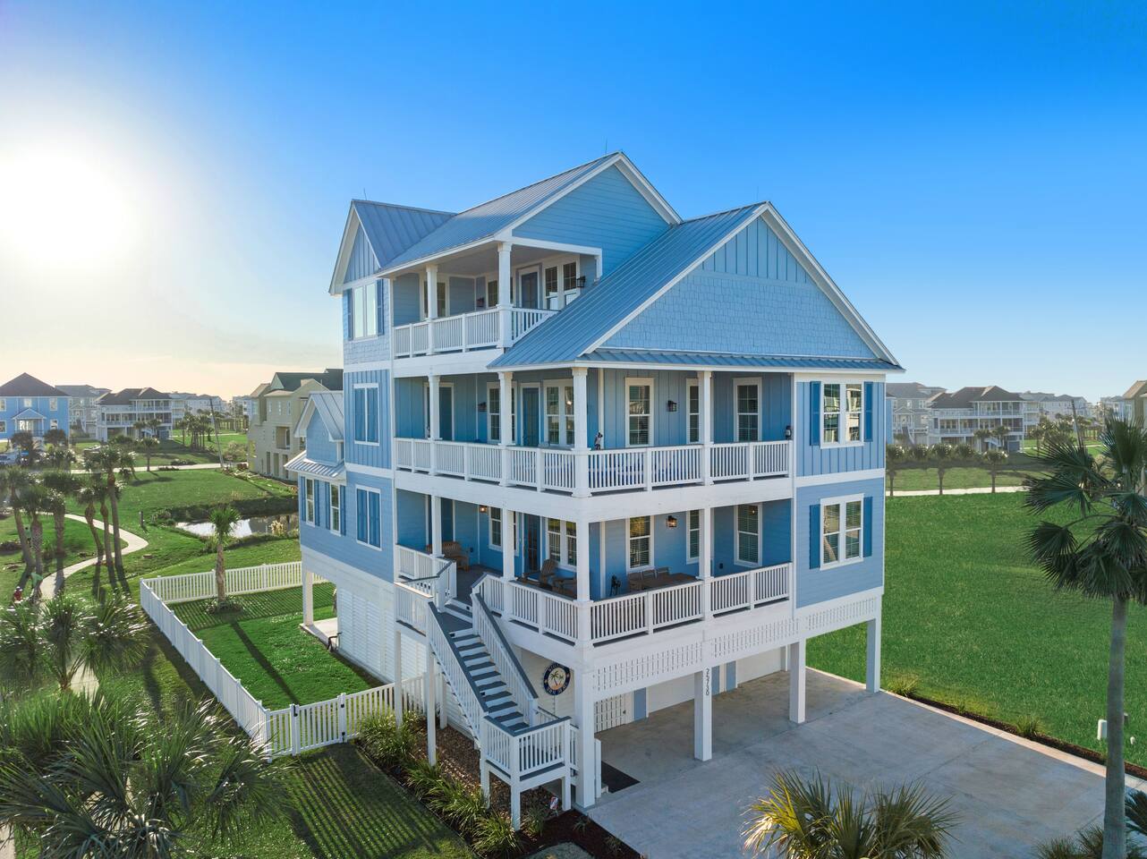 Immaculate, brand new, and offering exclusive access to the resort amenities of Pointe West, this five-bedroom, gulf-and-bay view home will place you a matter of steps from the quiet and beautiful beaches of Galveston's west end. You will enjoy having your own elevator, direct access to the beach and having 3 king master suites.