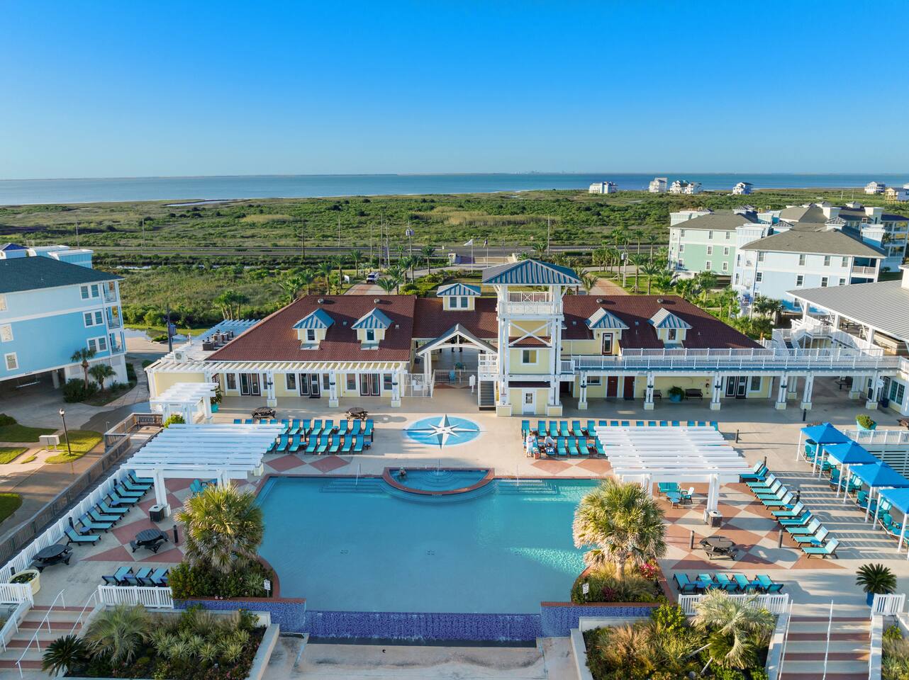 Pointe West Resort is a quiet, family friendly, beach neighborhood on the west end of Galveston Island. Pointe West beach club offers amenities such as a pool, hot tub, lazy river, game room, fitness center, basketball courts, pickleball courts, and fishing.
